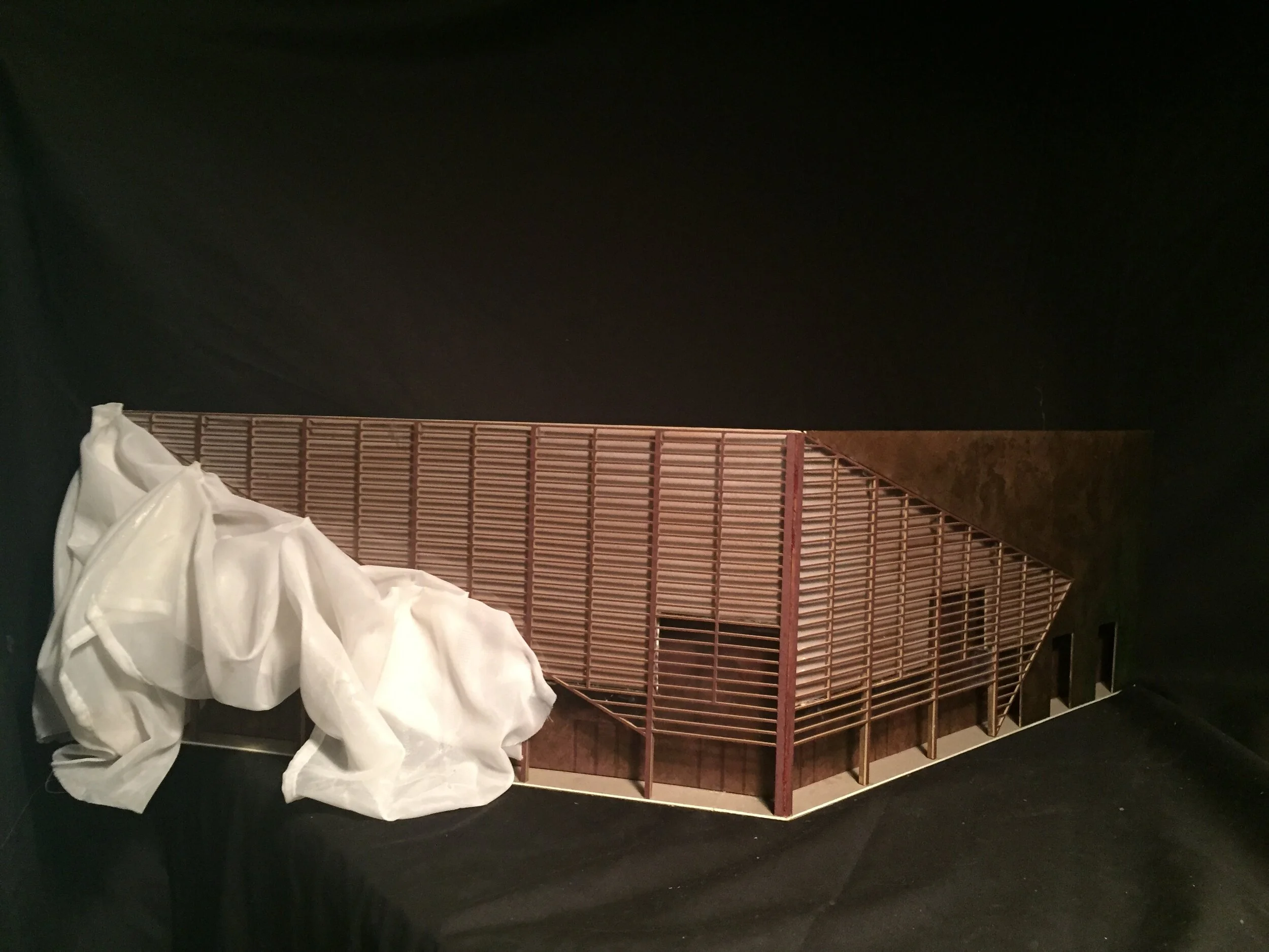 Material: Mobil mesh fabric, Glass, Iron & Copper to ages with the structure.